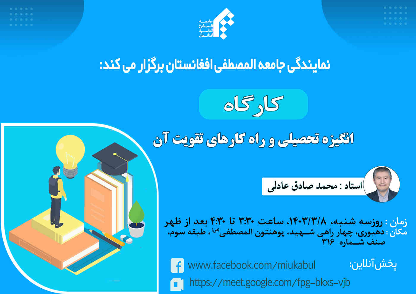 | کارگاه/دوره آموزشی | انگیزه تحصیلی و راهکارهای تقویت آن | محمد صادق عادلی | محصلین |