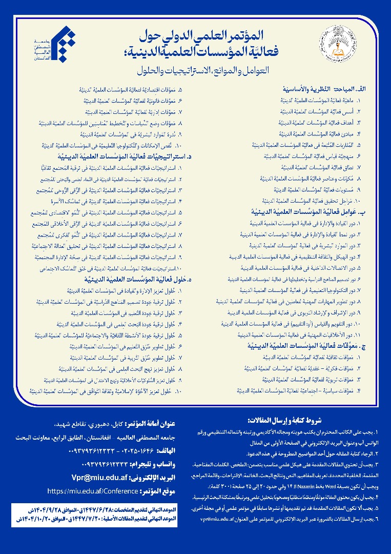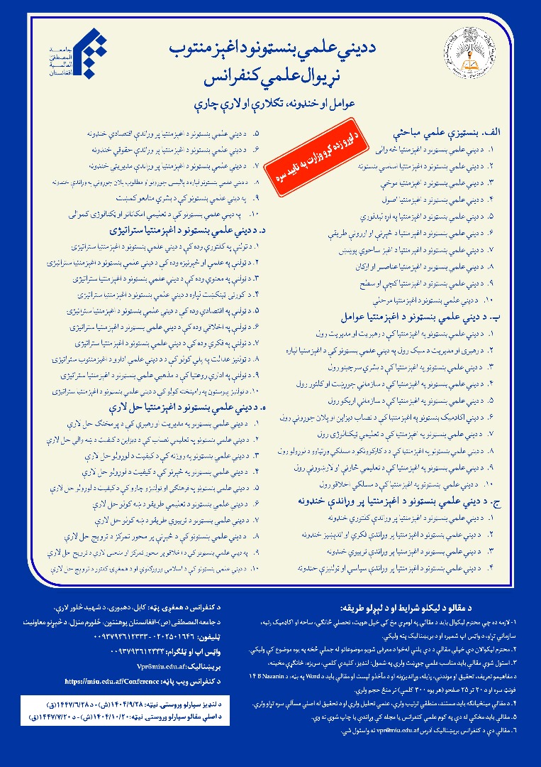 5. ارسال مقالات لزوماً از طریق پست الکترونیک همایش به آدرس vpr@miu.edu.af صورت گیرد.