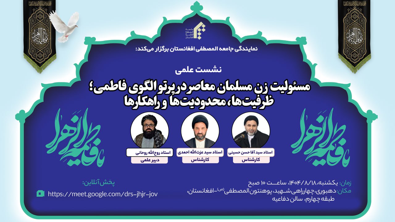 💠نشست علمی مسئولیت زن مسلمان معاصر در پرتو الگوی فاطمی؛ ظرفیتها، محدودیتها و راهکارها.