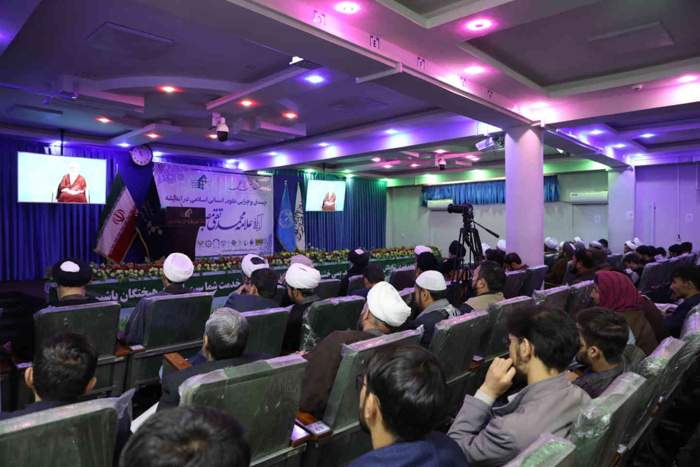 در ادامه، پیام تصویری ریاست محترم جامعهالمصطفی العالمیه، حضرت آیتالله دکتر علی عباسی، پخش گردید. حضرت آیتالله دکتر عباسی با بیان اندیشههای عمیق و اثرگذار آیتالله علامه مصباح یزدی، علوم انسانی را علاوه بر جنبههای نظری و توصیفی، دارای جنبههای فرهنگی و هنجاری دانست؛ یعنی علوم انسانی نسبت به ارزشها بیتفاوت نیست، بلکه متعرض ارزشها و هنجارها نیز هست. بنابراین، لازم است که این علوم اسلامیسازی شود، زیرا تمدن نوین اسلامی که انقلاب اسلامی ایران داعیهدار آن است، علوم انسانی متناسب با خود را میطلبد.